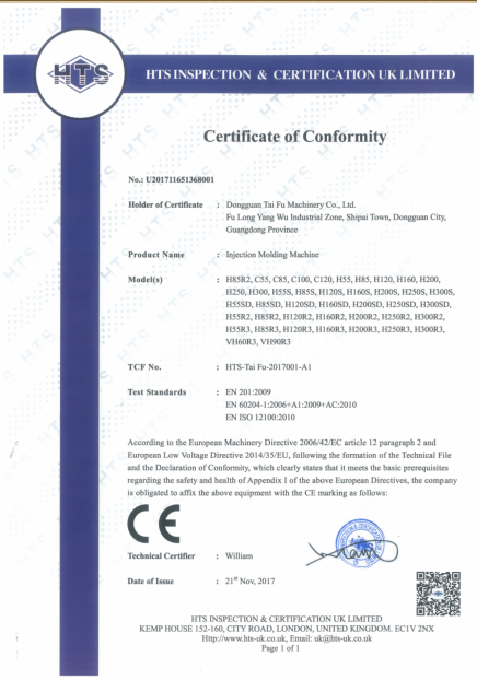 立臥式注塑機證書