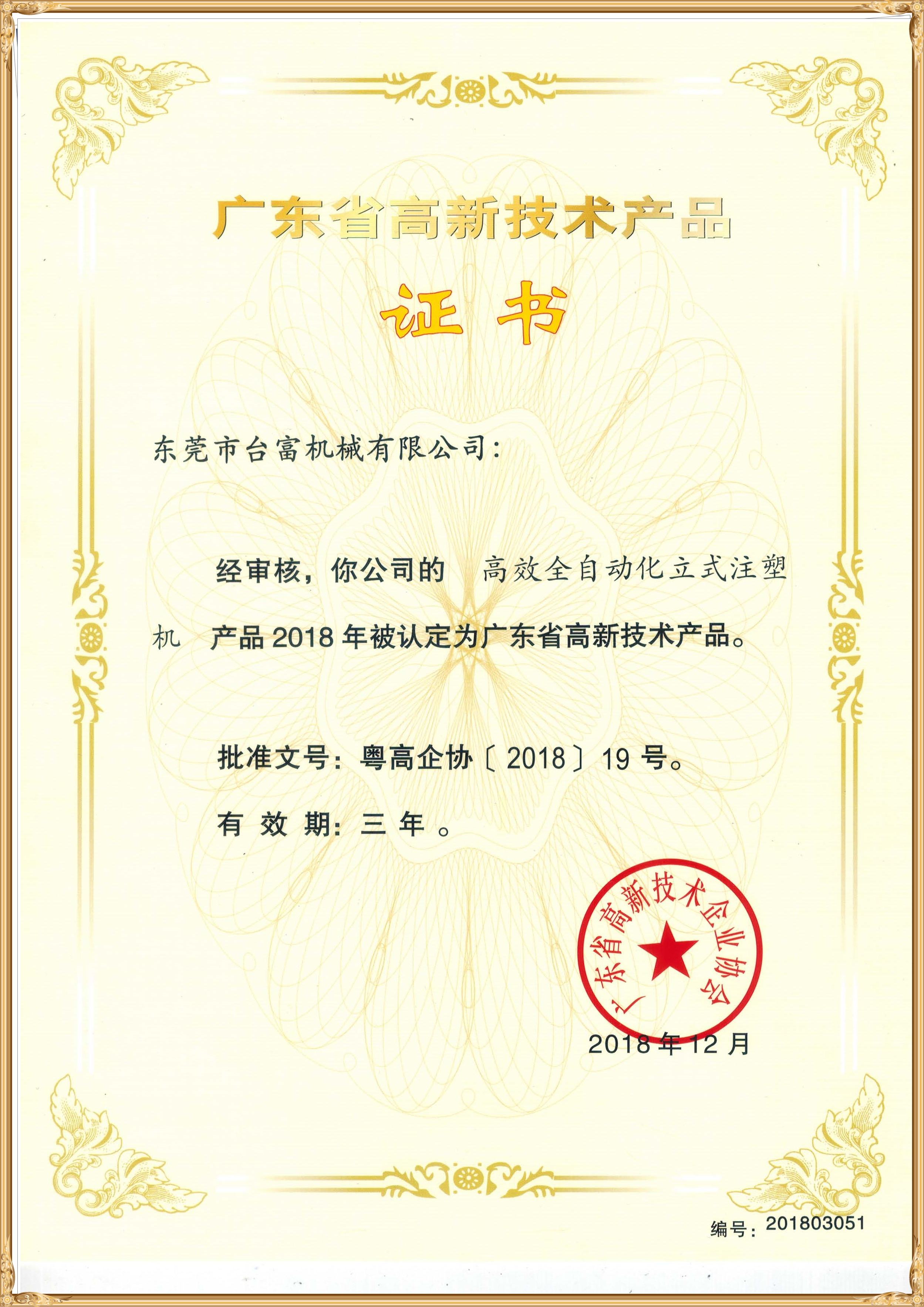高新技術(shù)產(chǎn)品證書(shū)